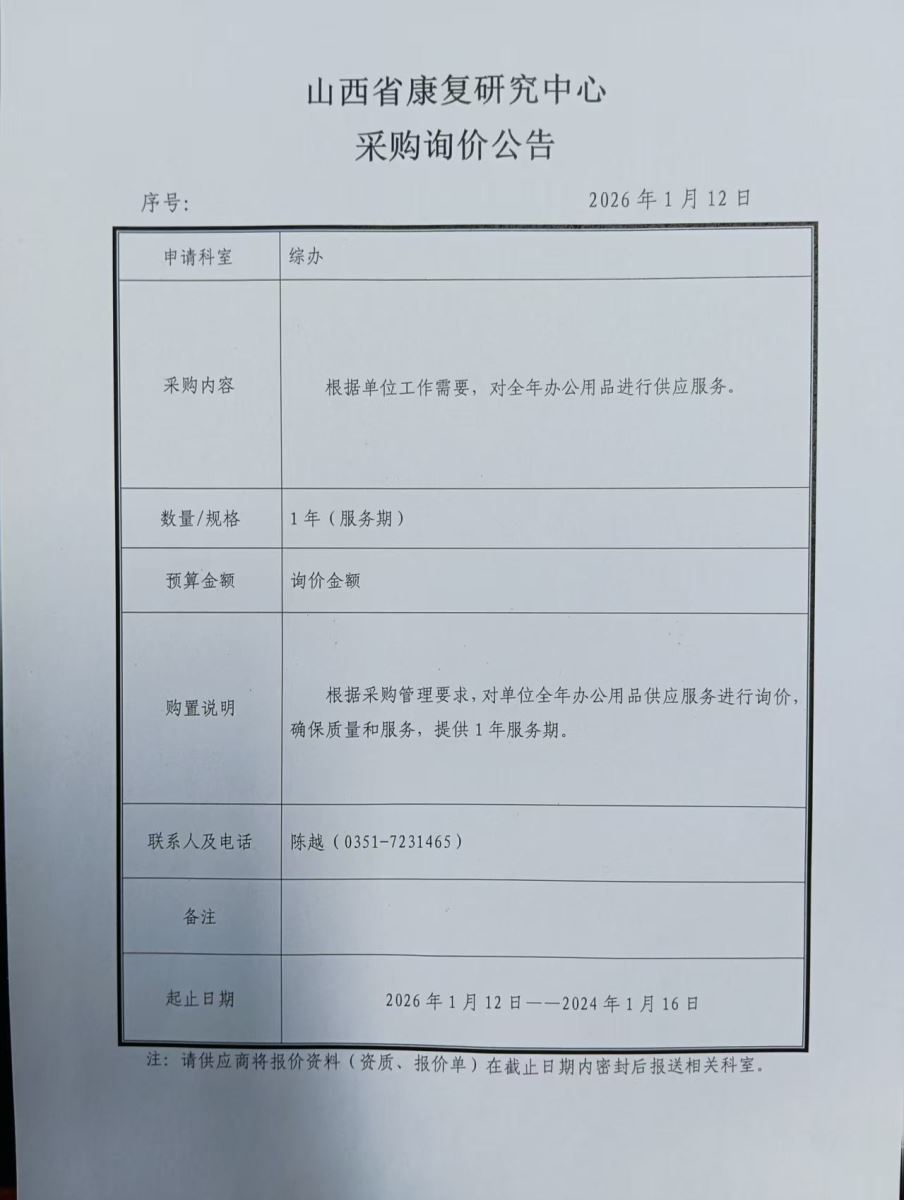 山西省康复研究中心采购询价公告